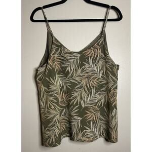 A New Day Large Cami Tank Palm Floral Lined Olive Peach Botanical Lightweight
