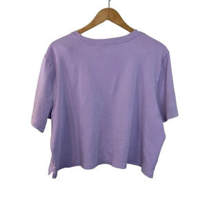 A New Day Lavender Cropped T Shirt Large Front Pocket Short Sleeve Loose Fit Top