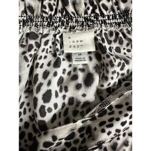 The blouse comes in a size medium, with a regular fit suitable for women. The multicolor animal print pattern adds a touch of elegance and style to the blouse, making it perfect for any fashion-conscious woman. Whether you're looking for a basic wardrobe staple or something a little more special, this A New Day leopard print blouse is sure to impress.