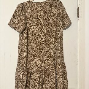 Stylish leopard print dress. Short sleeves. Flowy design.