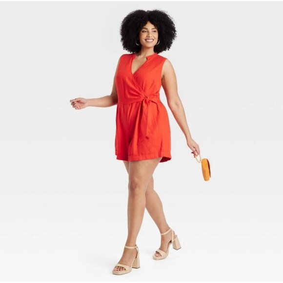 A New Day Linen Blend Plus Size Romper/Mini Jumpsuit Womens Size XL Tangerine Or