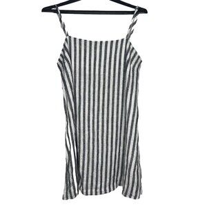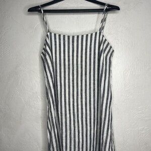 A New Day Linen Blend Spaghetti Spaghetti Strap Grey White Striped Size M NWOT
