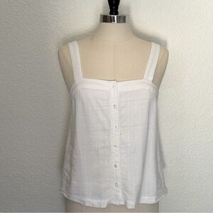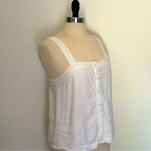 A New Day Linen Ladies Top in size M is a stylish and comfortable blouse perfect for any woman's wardrobe. This sleeveless top features a square neckline and wide straps, making it a versatile and trendy addition to your collection. Made from high-quality linen fabric, this top is machine washable for easy care. The classic white color and camisole style of this top by A New Day make it a timeless and chic option for any casual or formal outfit. Lined and has a beautiful textured weave.