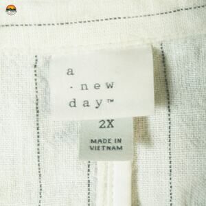 A New Day Linen Suit Jacket Blazer Cream Pinstripe Long Sleeve Lagen Women's 2XL