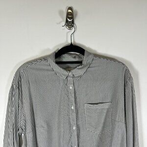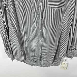 A New Day Long Sleeve Button Front Shirt Large Gray White Striped NWT Capsule