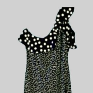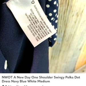 NWOT: A NEW DAY MEDIUM one shoulder Navy and white polka dot dress. 100% polyester.If you love polka dots this is your dress!