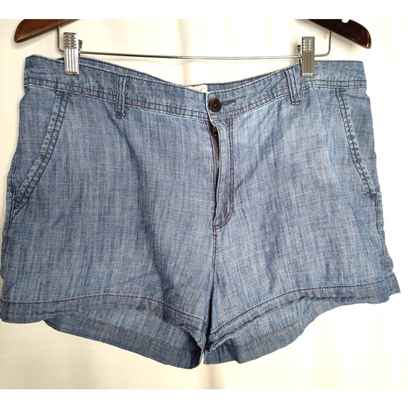 A New Day Medium Wash Chambray Jean Shorts Flat Front Chino Size 14. In good preowned condition. No holes, no stains, minor wear.