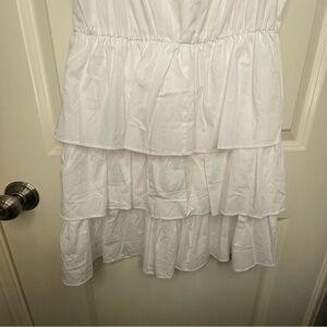 A New Day Mini Dress White Ruffle Multi Tiered Flutter Short Sleeve