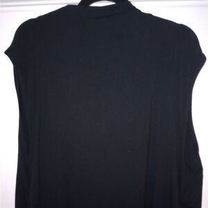 Black sleeveless maxi dress with mock neck and ruched sides.