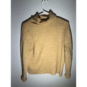 Stay warm and stylish with this cozy turtleneck sweater from A New Day. Designed in a warm mustard yellow hue, this sweater features a soft knit fabric, ribbed details on the shoulders and neck, and folded sleeve cuffs for a laid-back yet polished look. Perfect for fall and winter wear, it pairs beautifully with jeans, skirts, or trousers. Tag size: Small. Made in China.