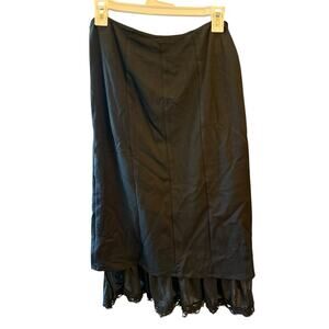 A New Day NWT Black Size Medium Lace Trim Midi A-line Skirt Stretch Side Zip