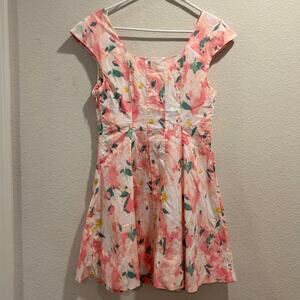 A New Day Pink Multi Floral Corset Woven Sleeveless Mini Dress Size 6