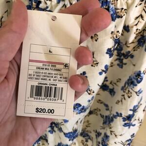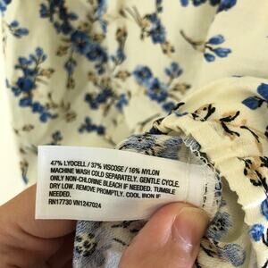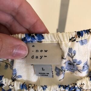 A New Day NWT Women's Cream Blue Floral Flutter Sleeve Blouse Size L