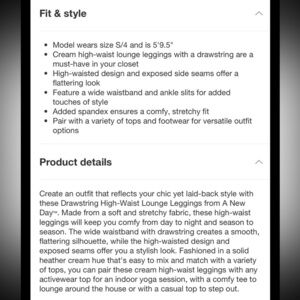 A New Day NWT Women's M Heather Cream Drawstring High-Waist Lounge Leggings