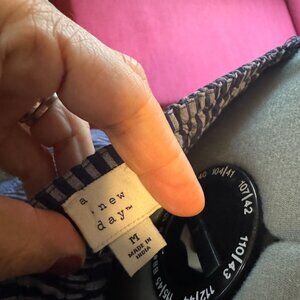 A New Day navy striped smocked maxi dress in size Medium. Features adjustable spaghetti straps, a stretchy smocked bodice, and a lightweight flowy skirt. Super comfy and flattering — great for summer, vacations, errands, or layering with a denim jacket.