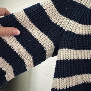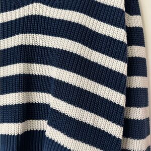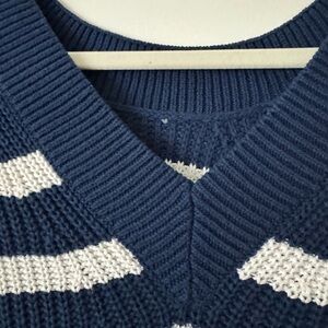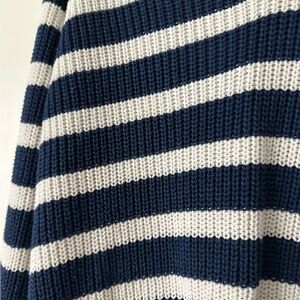Stay stylish and comfortable with this navy and white striped sweater. Perfect for any casual outing. EUC