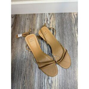 Keywords: nude heels, tie up heels, block heel sandals, strappy heels, women's shoes, A New Day, ankle wrap heels, dress sandals, neutral shoes, party heels, comfortable heels, new with tags