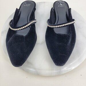 A New Day Open Back Black Velvet Sequin Strap Mule Slip On Ballet Flat Shoes