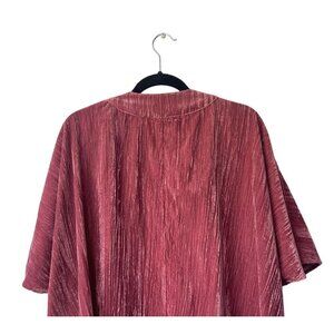 A New Day Open Cardigan Crushed Velvet One Size Boho Kimono Burgundy Pink