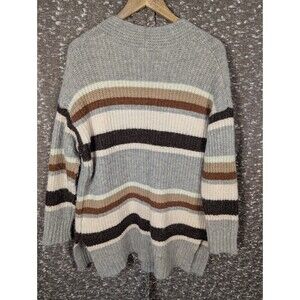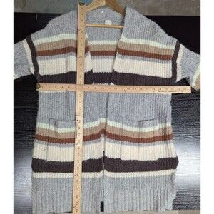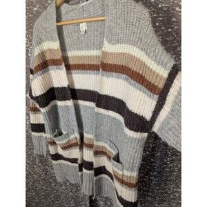 A New Day Open Front Sweater Striped Cardigan Women's Size XS Gray, Brown, White