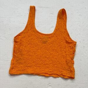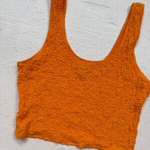 A New Day Orange Textured Crop Tank Top XS Sleeveless Scoop Neck Stretch