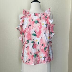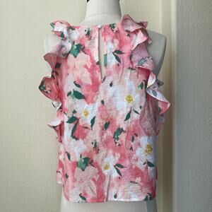 A New Day Pink Floral Print Ruffle Tank Top, Size S. New with tag. First photo is a stock photo to show fit and detail only.