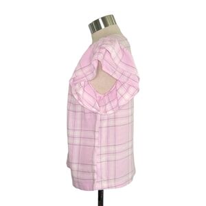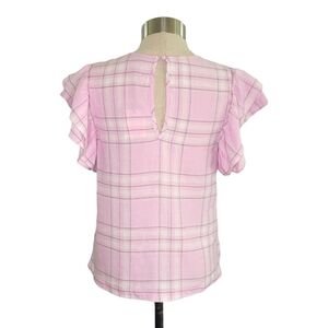 A New Day Pink Plaid Ruffle Sleeve Linen Blend Top Size XS Lightweight Spring