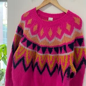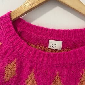 A New Day Pink Print Fuzzy Sweater Size 2X. Excellent condition, like new. Size tag has been cut out. Fuzzy eyelash style knit sweater. Relaxed fit.