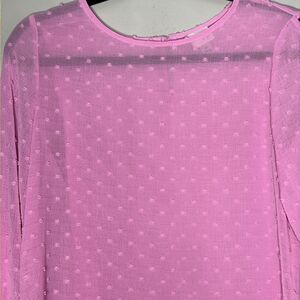A New Day Pink Swiss Dot Blouse Cold Shoulder Ruffles Long Sleeve XS