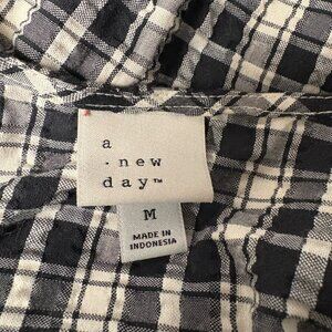 A New Day Plaid Midi Wrap Dress Womens Size Medium Puff Sleeves Belted Casual