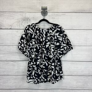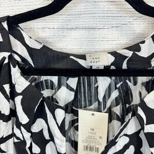 A New Day Plus Size White & Black Floral Puff Sleeve Blouse Size 1X