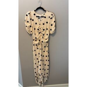 A New Day Polka Dot Women's Crepe Puff Short Sleeve Midi Dress Size Small