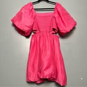 A New Day Puff Sleeve Bubble Mini Dress Cut Out Hot Pink Women’s Size M