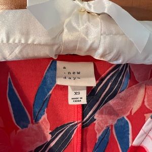 Barely worn red maxi wrap dress from A New Day with floral pattern (bought at Target). Beautiful fit and flare with an adjustable side tie for the wrap, a button at the bodice, pockets, and rouched detail at shoulders. 100% Polyester. Machine wash cold.