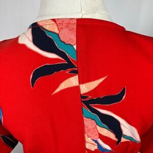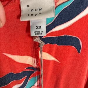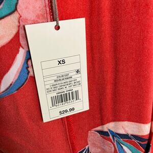 A New Day Red Floral Wrap Midi Dress XS Blue Pink Tie Waist Short Sleeve New