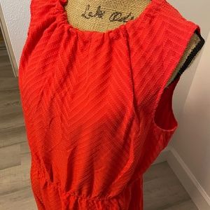 This is an A New Day Red Orange Herringbone Tie Back Dress - Size L. The dress is in good condition. The tie on the back is velvet-like fabric. Dress is lined.