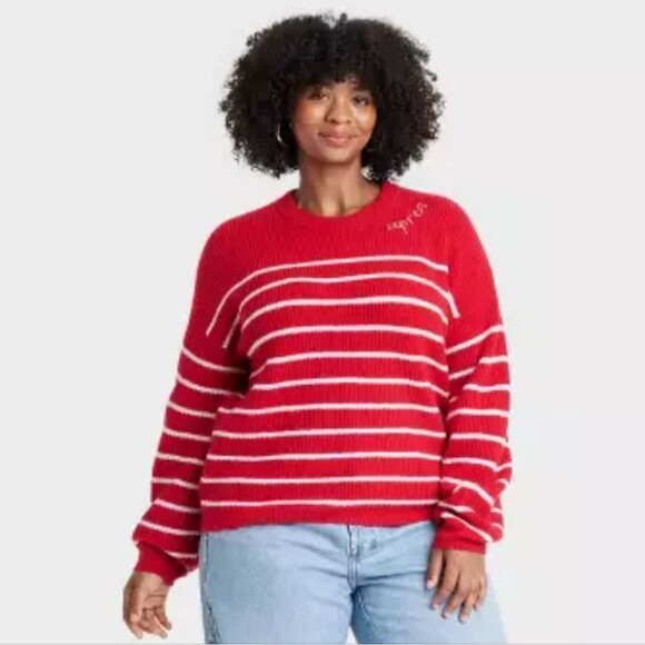 A New Day Red White Striped Apres Sweater Size 2X NWT P2P 27