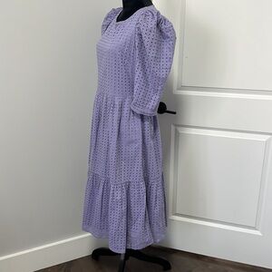 A New Day Round Neckline Puff Elbow Length Sleeves Knee Length Purple Eyelet Tier Dress size Medium