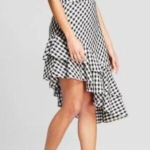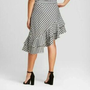 A New Day Ruffle Asymmetrical Black and White Gingham Skirt NWT size 24!