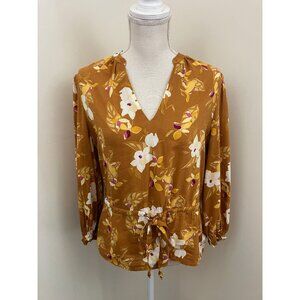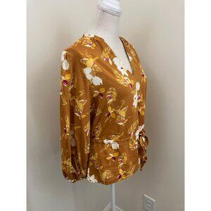 A New Day Rust Floral Print Long Sleeve Top Size Medium