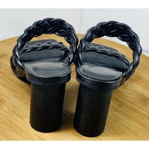 A New Day Sandals Womens Size 6 Braided Straps Slide Casual Black Faux Leather