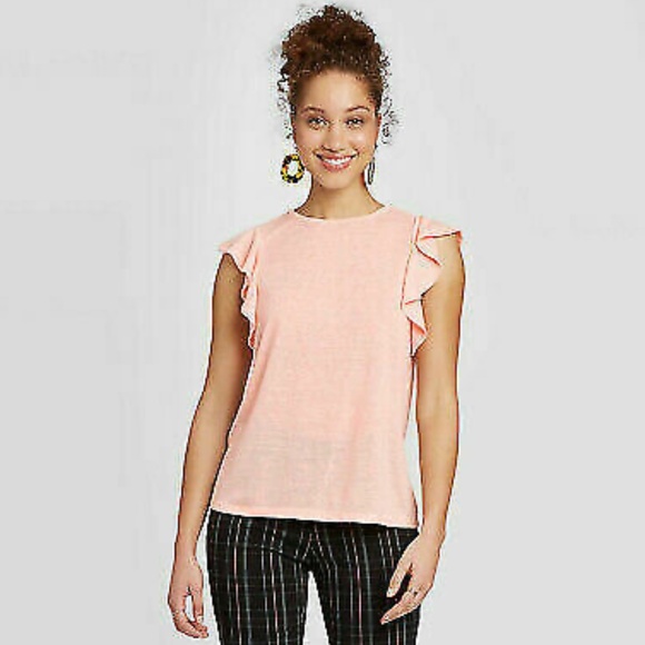 SOLD OUT- A New Day light pink weathered cotton ruffle sleeve tee, size M. Never worn. Like new condition. Beautiful light salmon color. Perfect for Summer.
