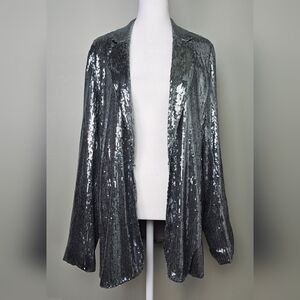 A New Day Sequin Pewter Silver Relaxed Blazer SMALL