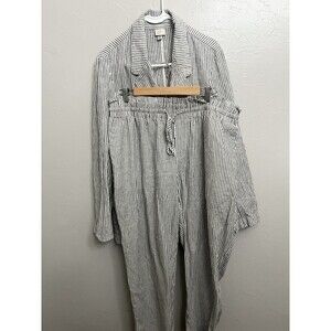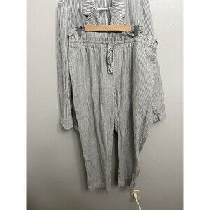 A New Day Set Wide Leg Pants Blazer Jacket Striped Business Wear Linen Blend 2X