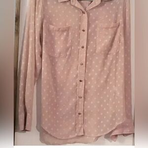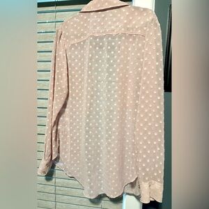 A New Day Sheer Blush Polka Dot Button Up Blouse
