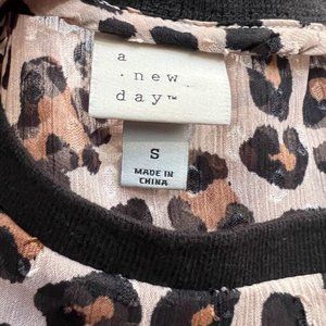 A New Day Sheer Leopard Ringer Blouse Top Size Small S