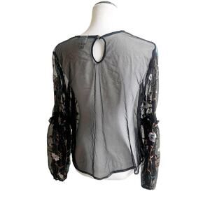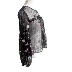 A New Day Sheer Mesh Peasant Top L Black Floral Embroidered Goth Whimsical