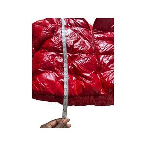 Stay warm and stylish with this shiny red puffer quilted jacket. Perfect for fall and winter, its wet-look finish and full zip design offer both fashion and function. Ideal for cool weather outings.