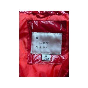 A New Day Shiny Red Puffer Quilted Jacket WetLook Full Zip Fall Winter Fashion S