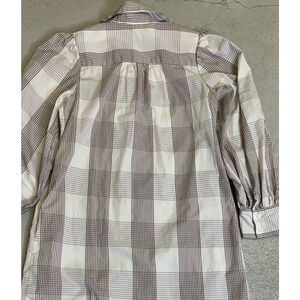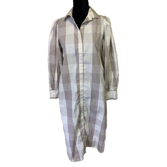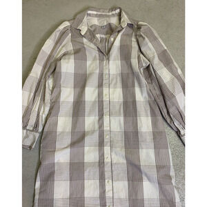 A New Day Shirt Dress Womens Small Tan Plaid Long Sleeve Tan Plaid Side Slits